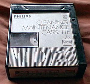 Most of the usual manufacturers made tapes for the VCR, these included Philips, Grundig, Agfa, BASF and Scotch (3M). There was even a VCR cleaning cassette manufactured by Philips which made so much noise as it went through, it sounded like it was sanding metal. The cleaning cassette wasn't very kind to the VCR, and if your machine had tired belts or motors, then often the head drum would stop spinning altogether or the capstan couldn't pull it through and the machine would go into an emergency stop routine.